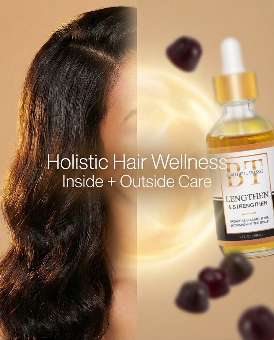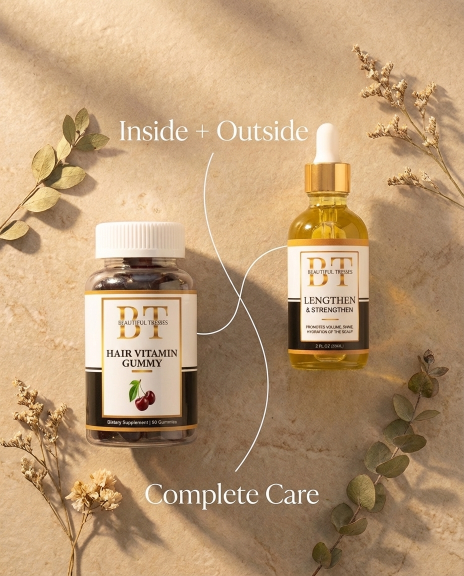The Beautiful Tresses Hairapy System is a holistic approach to hair care designed to nourish your hair and scalp from the inside out and the outside in. This powerful system combines targeted topical care with daily nutritional support to help strengthen follicles, promote healthy strands, restore scalp balance, and enhance natural shine.